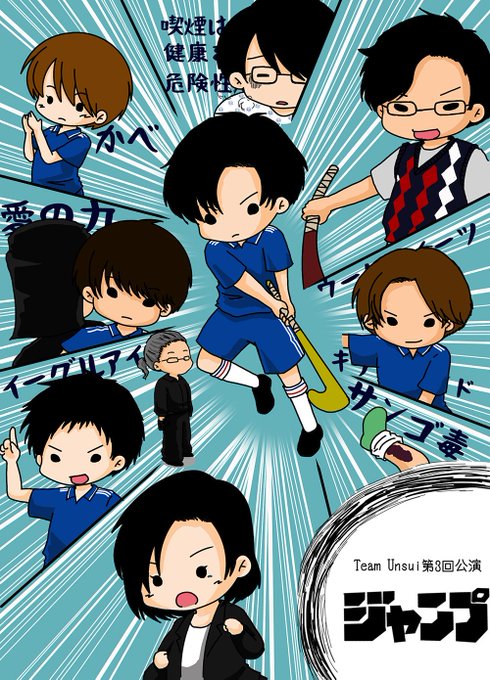 初日見た勢いで描いたけどネタバレ凄くて出せずにひっそりとしまってたやつ。髪のわけ目とか手とか色々逆だし誰おまだし色々ひどいけど個人的に真ん中のちょい斜め下の方が気に入っているので供養のために載せさせてください #ジャンプ #TeamUnsui