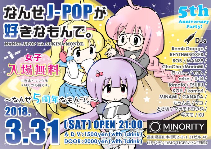 ある人に土曜日は天下一武道会みたいだねと言われましたw 対決ではないですがDJ22人みんなでワイワイしながらJ-POPかけまくりたいと思います! 「なんせJ-POPが好きなもんで。」5周年楽しみです!