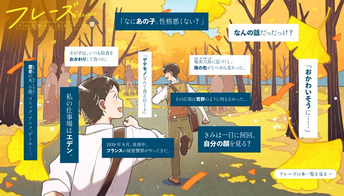 作品のフレーズをきっかけに気になる本と出会えるページとなっております。