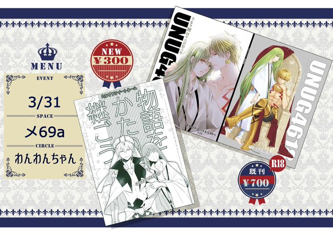 明日の大阪春コミにギルエルで参加します 5号館メ69a“わんわんちゃん” 私は直参できませんが合同誌の陸奥さんがいます! 本の種類が寂しくなってきたので、どこかで新刊出したい・・・ 明日はよろしくお願い致します🤗