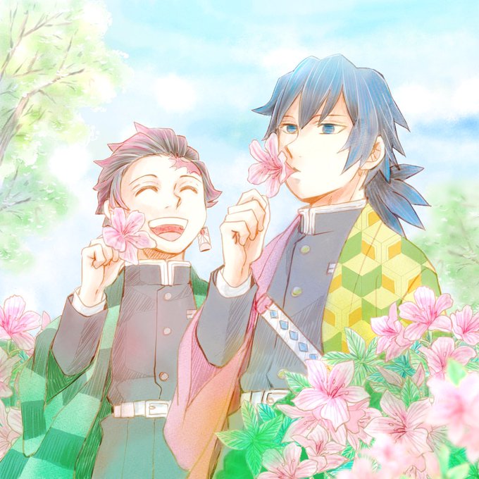 🎴義勇さん、ツツジの蜜美味しいでから、吸ってみて下さい!