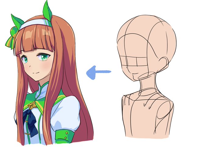 210910 斜め顔練習1週間の成果 ①斜め顔素体を何も見ず描ける ↓ ②そこに既存のキャラを乗せて描く 線画も塗りも雑ですが、スラスラとここまで描けたのは正直びっくりandめちゃくちゃ嬉しい! 引き続きがんばります💪 #アニメーター志望 #ウマ娘
