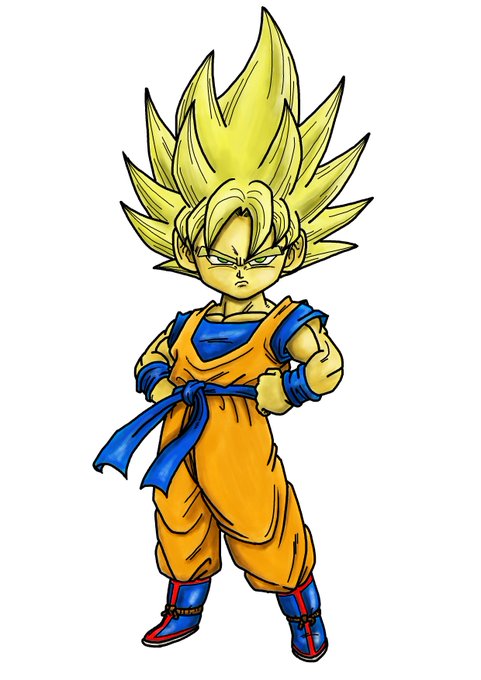 昨日のブロリーと同じデジタルイラスト初期作の悟空を、今回の #ベジットブルー の下絵として使用。初期と今と、同じ構図の絵でもこんな感じで違いがあります。