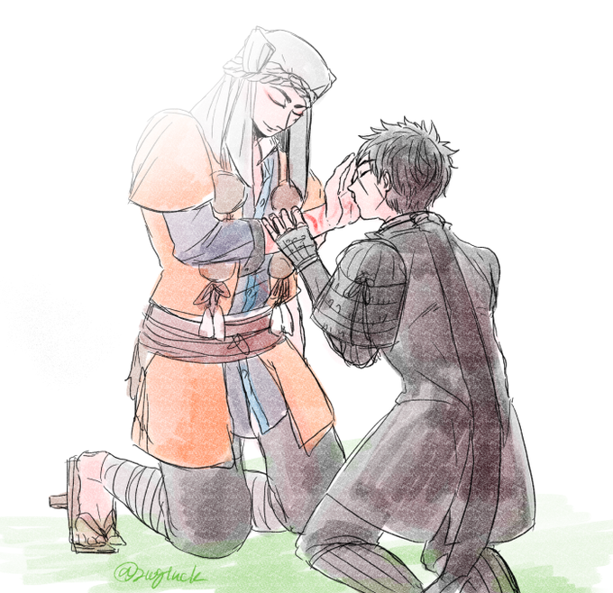 #たぬぶし深夜の真剣お絵描き60分一本勝負 お題:慈悲からくる愛情 この世から戦が無くなって 世界が俺を必要としなくなっても アンタは変わらず愛してくれるか