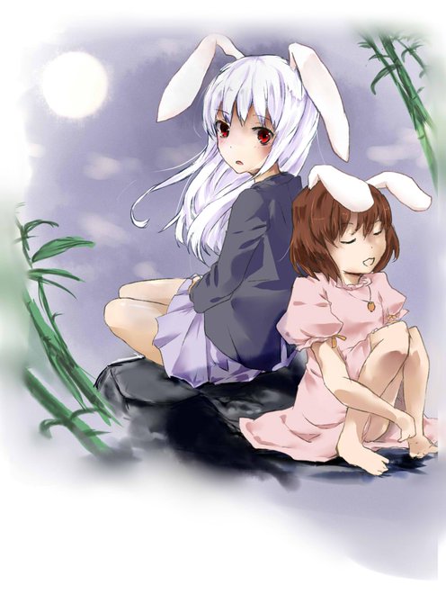 pixiv にウドンゲとてゐのイラストあげました。月美草のホームページの壁紙を加筆したものです
