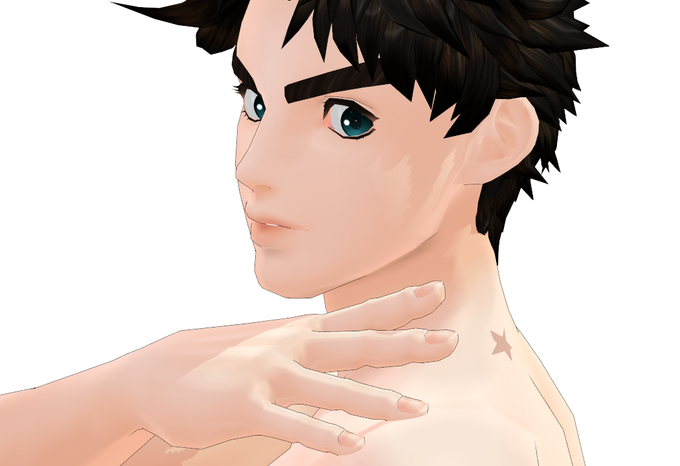 どうせ隠れちゃう位置ですが、せっかくだから少年時代の体にも星の痣を入れてみました。顔はちまちまといじり過ぎて、これでいいのかわるいのか、直すならどこを直したらいいのかわからなくなってきてしまったので、もう少し眉をいじったら服にとりかかろうかと思います。