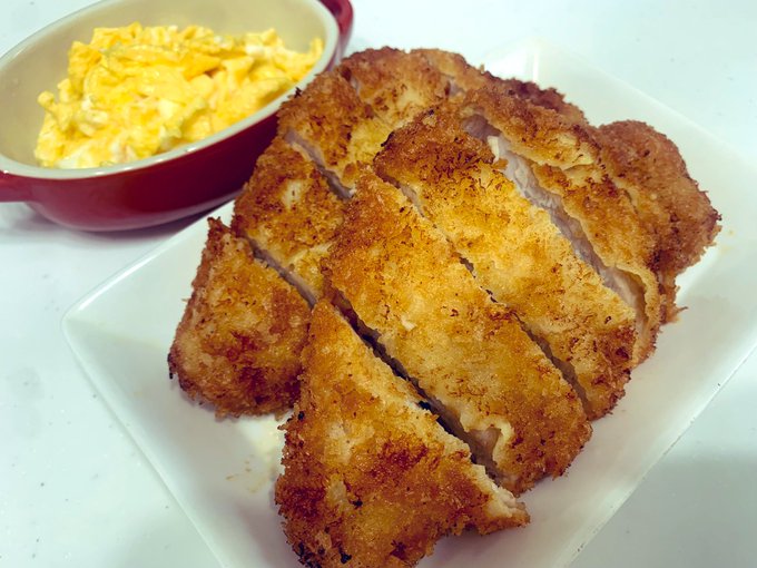 人生二度目の豚カツ😋🍴💓 うまく揚げられた🥰 そしてぴこさんが作ってくれた 画像がかわいまる過ぎて♥️ うちのママは早速 LINEのアイコンに設定してた🤣 ぴこさんありがとうございます🥰