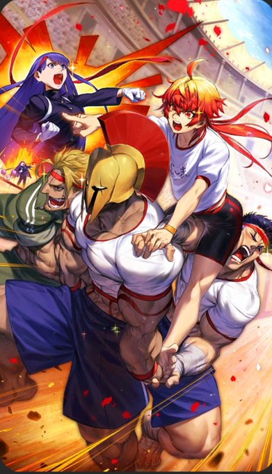 @mayugeyama イベント礼装のマッスル・キャバリエってやつです。 ヘラクレスの絵師さんが担当してくれて、この絵もその絵師さんがツイートしてくれた物です。