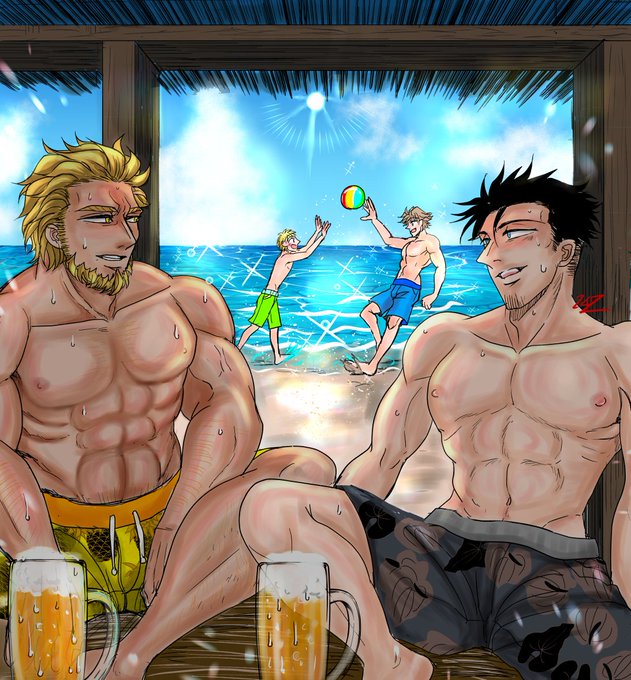 どっちもおっきいおっぱい(雄っぱい)描くけど、男は筋肉筋肉もりもりゴツクなるように気を付けて、でも腰は細くなるようにしたい!