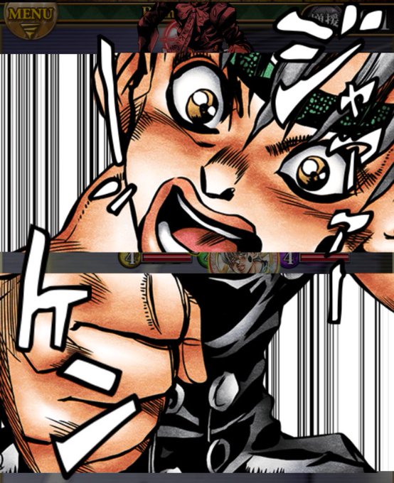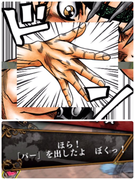 1枚目はopの再現って知ってたよ。でも2枚目もop再現は知らなかった…原作の突きの速さ比べかと思ってたらかなりopの絵なんだな…いーまーさーらーwww #ジョジョss
