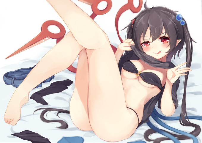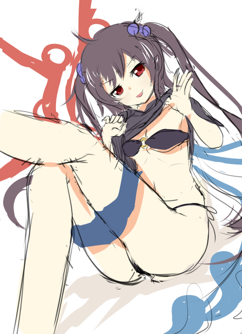 祭唄先生のビキニツインテぬえちゃんがかわいすぎたので描きました。ニーソははかせて脱がせました(矛盾
