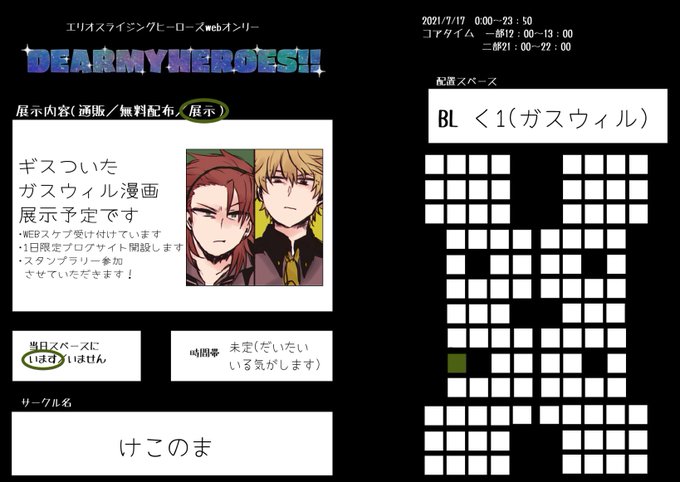 #DMH20210717 7/17WEBオンリー、く1でスペースいただきました。ガスウィルです。ガスウィルブログサイト展示予定です。ギスついた2人の話をネップリ登録できるといいなと思ってます…よろしくお願いします~