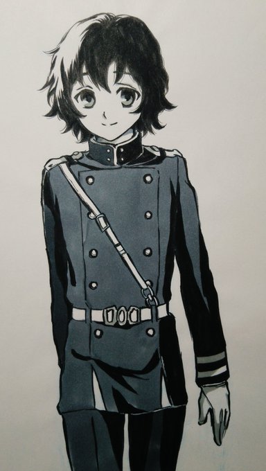 #白夜優一郎生誕祭2016 過去絵ですが☺♡おめでとう♡ 泣いてるショタ優ちゃん グレンにこれが制服だと騙されてるショタ優ちゃん