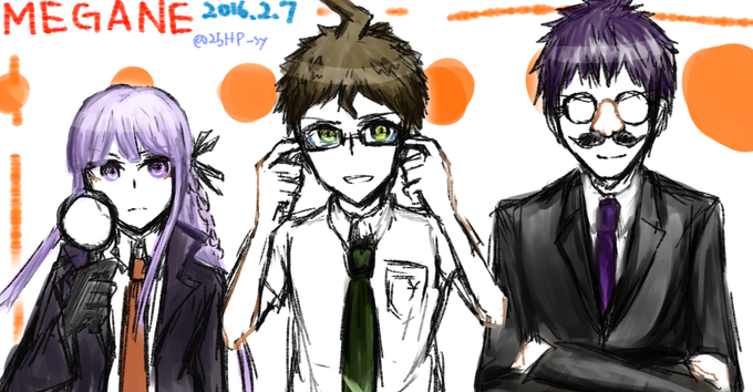 (???コンビ+学園長) #論破版深夜の真剣お絵描き60分一本勝負 虫眼鏡、眼鏡