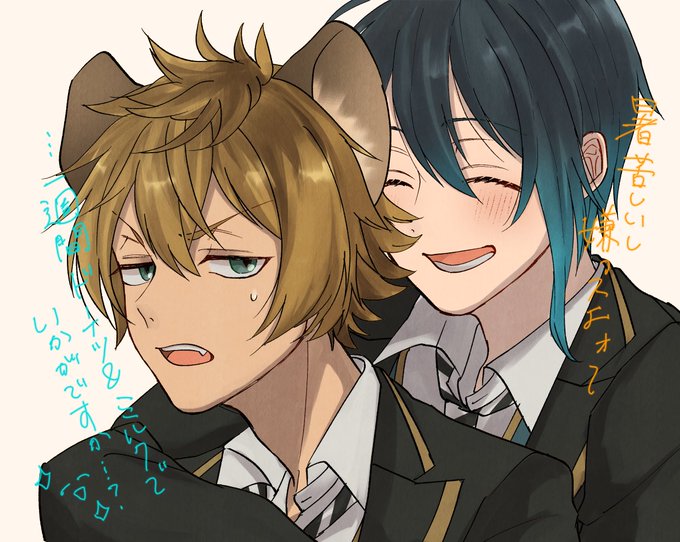 🐆「そこまでして良いとは言ってない」 🐆🌸がわちゃわちゃしてるだけ。 ※がっつりラギより少し身長の高い監督生の顔が出ています。 #twst_プラス #キスの日