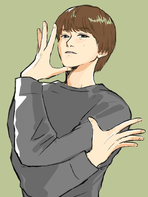 よく見るこのポーズの時の表情とか手とか好きよっていうスケッチに衣装着せた。お誕生日祝い的な絵が描けなくて、せめて。 23歳おめでとうございます🍮
