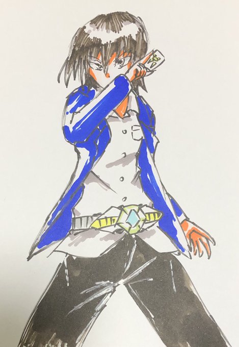 オリジナルライダーである仮面ライダーシカーダと愛澄 侑紀(あすの ゆき)を適当にラクガキ
