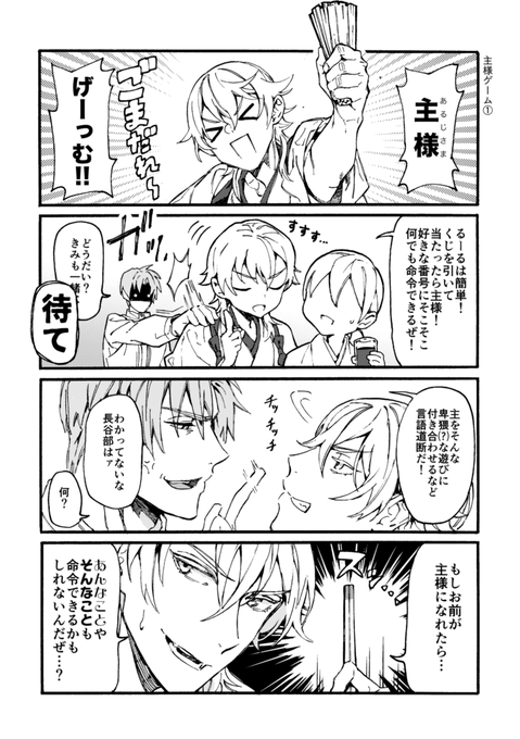 無配できた!CPなし4コマ漫画です(出てくるの:人間無骨/歌仙/長谷部/不動/女審神者) https://t.co/BpLs3Uc6lq https://t.co/e9SDE4UzU7