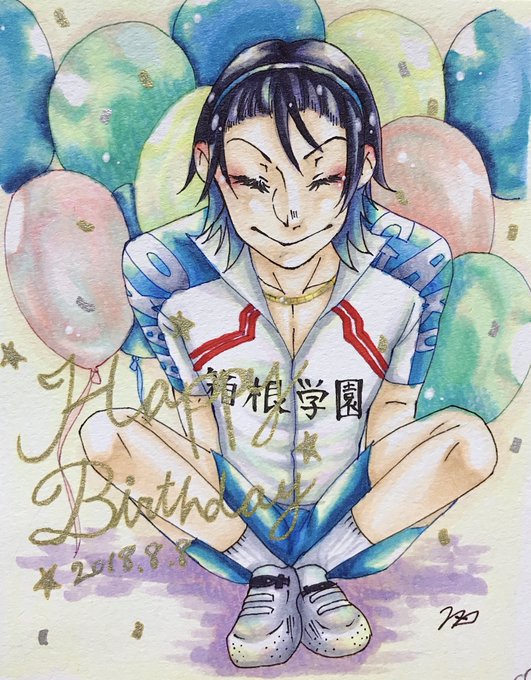巻ちゃーーーーーん!!!お誕生日おめでとう巻ちゃん!巻ちゃんは最高のクライマーやで!!折角の誕生日に土砂降りやからせめて絵くらいはと思って晴れさせたよ.... #巻島裕介生誕祭2018 #巻島裕介誕生祭2018