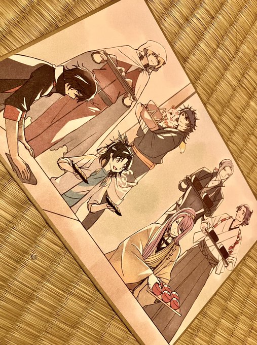来場者特典、こういう感じなんだ! こういうの、キャラのバストアップとかのイメージだけど、これはこれで本丸在住者目線のスナップみたいで良い https://t.co/3A4IyT5MnD