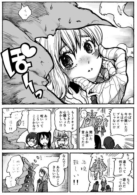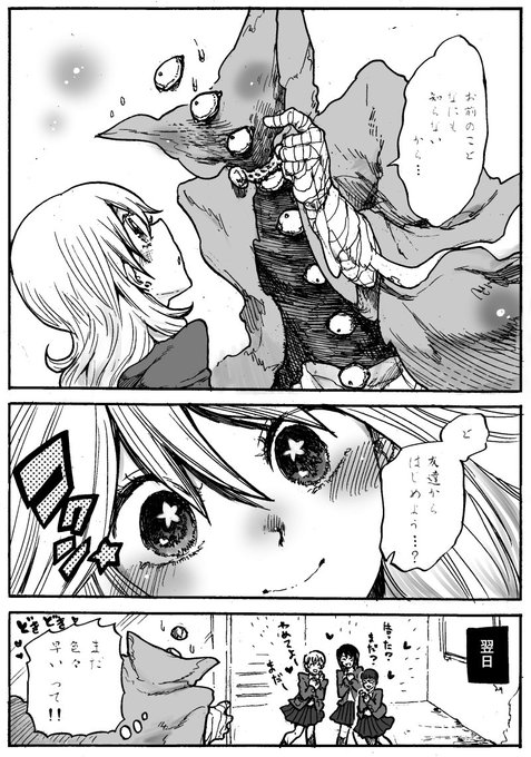アンコール更新中の「異形ちゃんといっしょ」ですが、だんだん人口が増える扉絵は単行本に収録されていませんのでこの機会にぜひぜひです〜!!内容はハサミ異形頭の男の子が色々考える回です!よろしくお願いいたします!!!