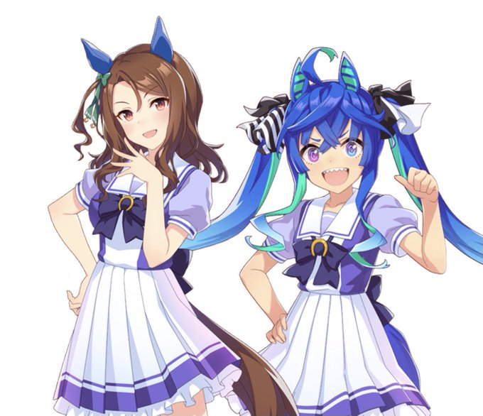 ヘリオスとエアシャカールの勝負服って結構似てるね 青と黄色のカラーと 白のホットパンツが共通してる!