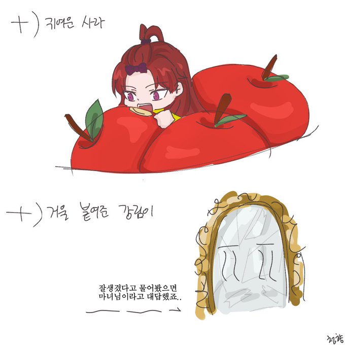 백설공주 AU 리온강림ㅎㅎ +) 귀여운 사라있어요🍎 옷은 구사장님 연성 참고했어용! #신비아파트 #리온강림 #강림리온 #청향_신비아파트