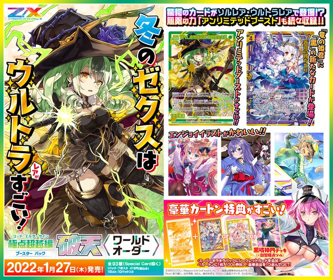 【Z/X】1/27、ブースターパック「極点超越編 破天<ワールドオーダー>」発売決定!UR、SLRが今年も収録!アンリミテッドブーストも多数、「竜の姫君」に黒のカードが登場など盛りだくさん!/ダブクリ速報oD https://t.co/s6ub0Kz5Ld