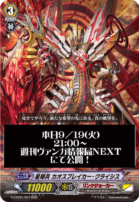 【VG】公式Twitterにて「星輝兵 カオスブレイカー・クライシス」カードイラストが公開!本日のニコ生でテキストも公開とのこと/ダブクリ速報GNEXT https://t.co/2MY1RoLoDR