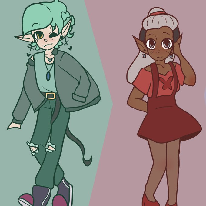 Here's a quick little fashion doodle of Edric and Skara. This is like- them at a party. A casual one, bc i love Skara wearing a suit to grom. #toh #edricblight #skara #tohfanart