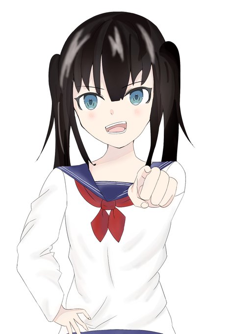 黒髪ツインテール大好き #イラスト