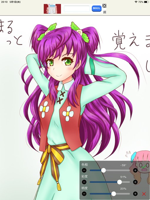 #春風に撫でられ若葉は萌ゆる 春風わかばちゃん……/// ラジカツフレンズ!51の逢来りんさん情報だよ……/// 丼物はまぐろ丼 飲み物はコーラ 果物はみかん 毎回食べるならタピオカ