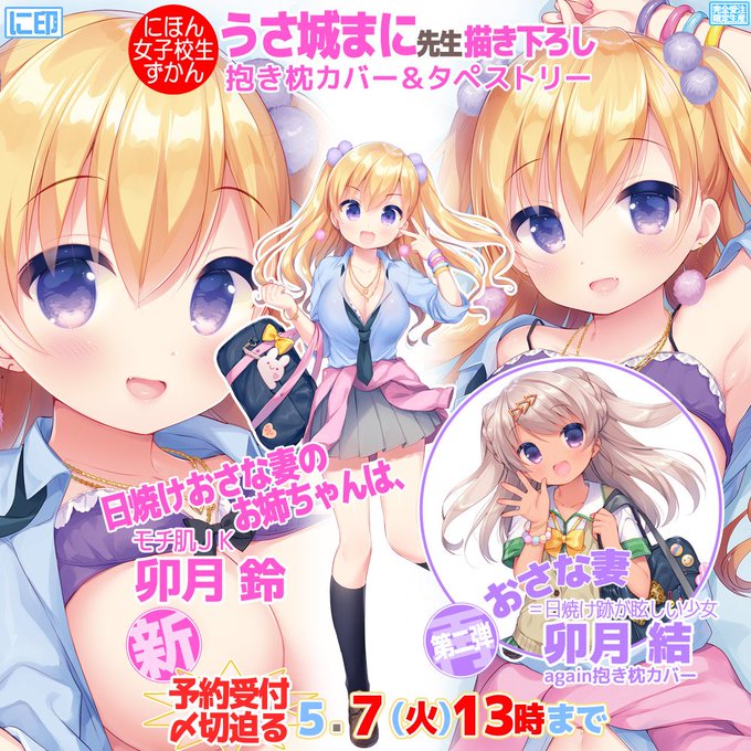 【〆切直前】もち肌ぷに肌の卯月鈴&結ちゃんの姉妹まとめて可愛がろう! うさ城まに先生描き下ろし抱き枕カバーの予約〆切まであと僅か! 童顔に豊満なロリ巨乳鈴お姉ちゃんタペストリーとのお得セットもお忘れなく! 5/7(火)13時まで! https://t.co/026TMTLAog #抱き枕