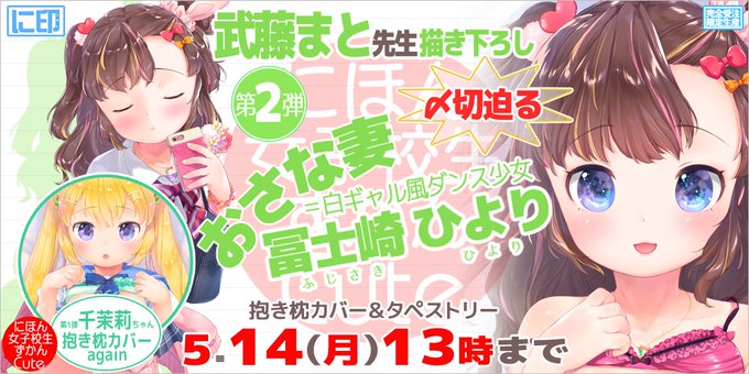 【に印更新②】武藤まと先生が贈るぷにっとキュートなお嫁さん冨士崎ひよりちゃんを最終チェック! クローズアップとImage3D嫁ビューでひよりちゃんの可愛がりポイントを掴んでおきましょう! ご予約は5/14(月)13時まで! お忘れなく! https://t.co/vt5sKFEz05 #抱き枕