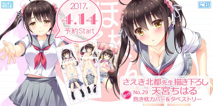 に印です。さえき北都先生最新描き下ろし第四弾JK『天宮ちはる』ちゃん、再登場の胡桃・萌花・サクラちゃん抱き枕カバー&タペストリーの予約受付は『18時』から開始します。今しばらくお待ちください! https://t.co/7sYEfZPez8 #抱き枕
