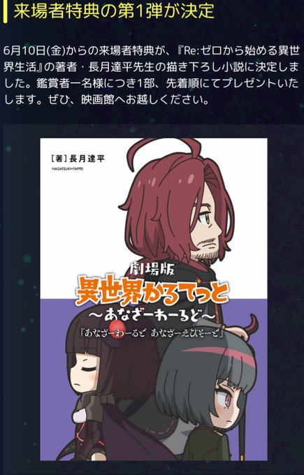 6/10から異世界かるてっと上映なのか。観るなら新宿か池袋か上野かな?