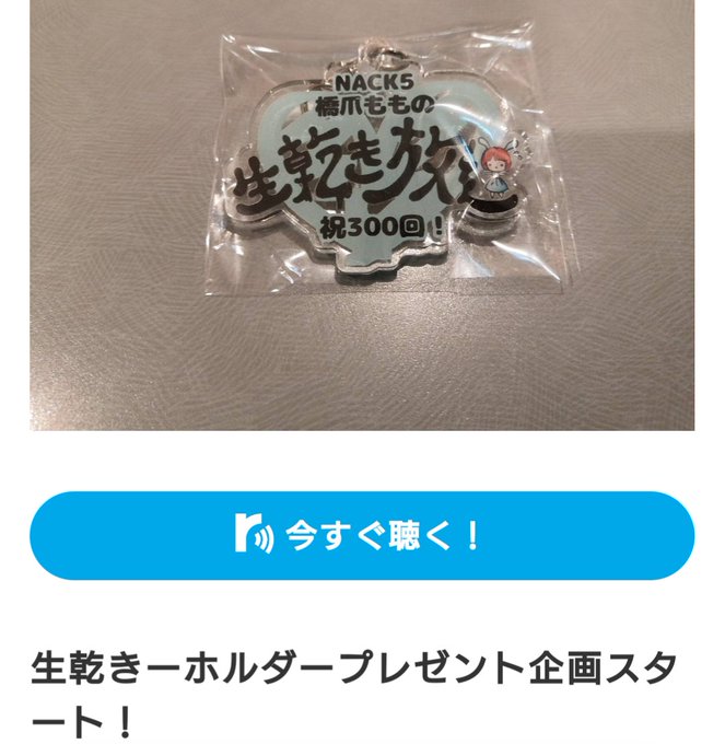 FM NACK5の橋爪ももさんの番組で放送300回記念のキーホルダーが当たって目が覚めたO(≧∇≦)O ありがとうございます(*´ω`*)