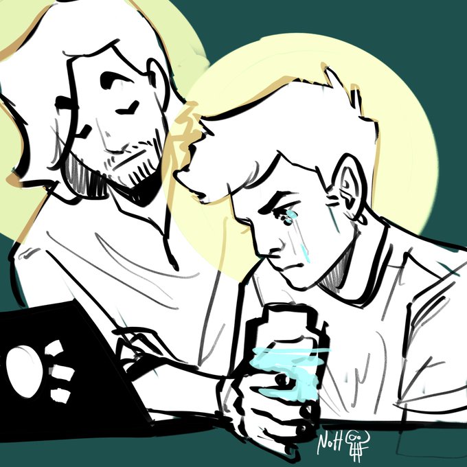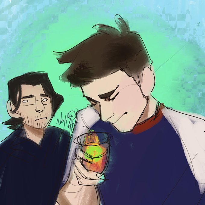 I got the honor of drawing @iceddarkroast in this one, along with the standard Mark + Ethan. Also, boy am I glad no one in UA has asthma.