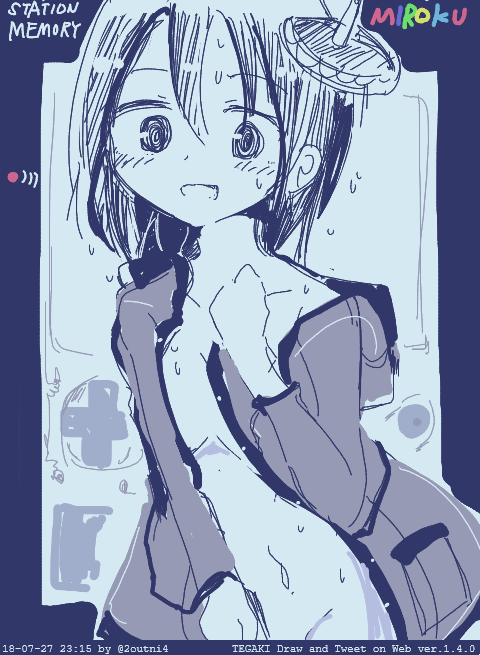 阪急烏丸駅の空調で涼を得る太秦萌ちゃん #tegaki_dt