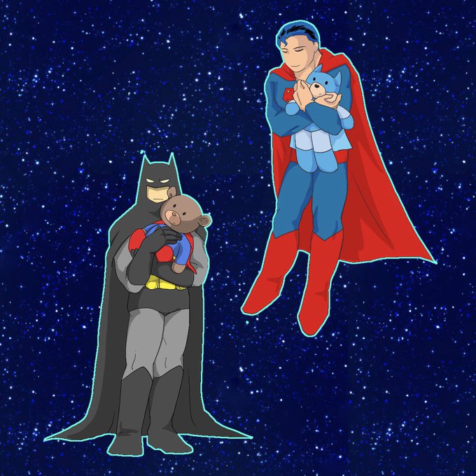@_kbmb ブルースに、@btdd256 ハル・ジョーダンの服着せましたー! この後絶対叱られるやつ!(・∀・)