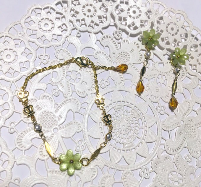 オリジナルアクセも天気いい日にちゃんと撮影し直してあげよう。 リーフとガラスパールはお気に入りなのだ!だがしかし私には似合わないので頒布してるのだ! 落書きは休みの間にキレイキレイ✨できたらいいな…できるんかな( ´∵`)