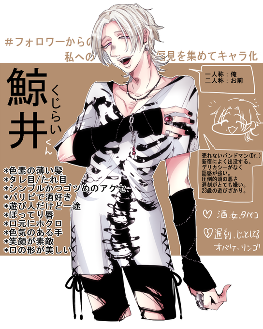 個人的に好みの男が出来たので遊んでくれフォロワー!!!!!要素色々下さり有難う御座いました~~!!! *フォロワーから私に対する偏見を集めてキャラ化する