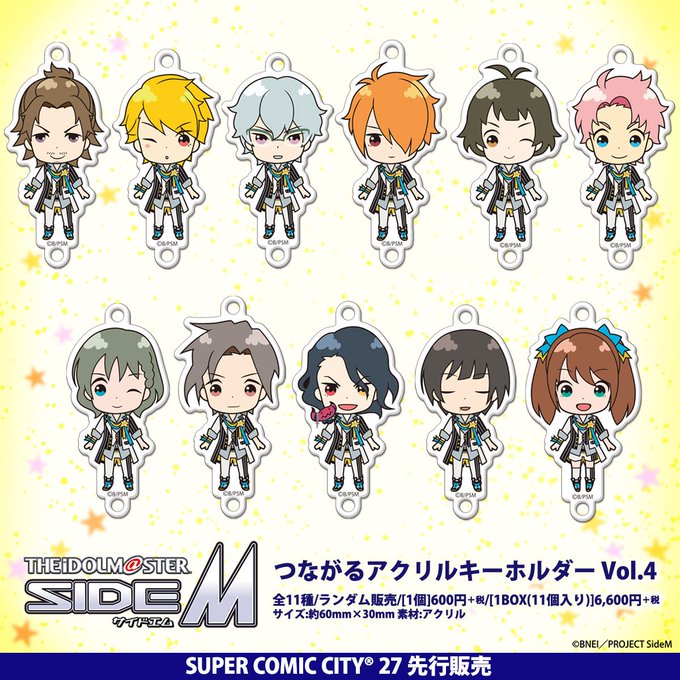 상품) 중외광업(中外鉱業), SUPER COMIC CITY 27 선행 판매 예정의 SideM 신상품「つながるアクリルキーホルダー」Vol.1~4발표