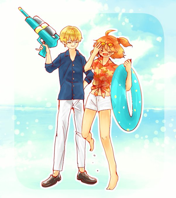 とりあえず可愛いから海で遊んでおいで………という願望を具現化したキャスギルぐだです🍧🍧🍧