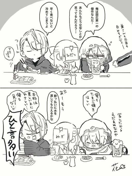 桜宴の長義くんとまんば。 清光「誰?あそこの板挟みにしたの」 #刀さに #女審神者