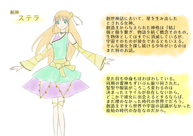 #うちの子の名前だけ晒してリプきた子を描く 1.ステラ まさか最初に原始の女神がご指名いただけると思わなかったってさ。元のツイートはプロフィールに固定してあるから、じゃんじゃんリプください。(うちの子自慢したい)