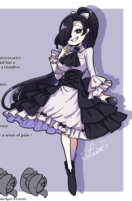年齢不詳(15歳以上は確定) 身長152cm 体重49kg 一人称はあたし 二人称はあんた、あなた お前 黒髪とゴスロリが特徴の不気味な少女 様々な世界線にこっそり現れて裏で暗躍する事を生業としています。 この姿はFNF関連のもの。 別の衣装を着ていたらFNF以外だと思ってください