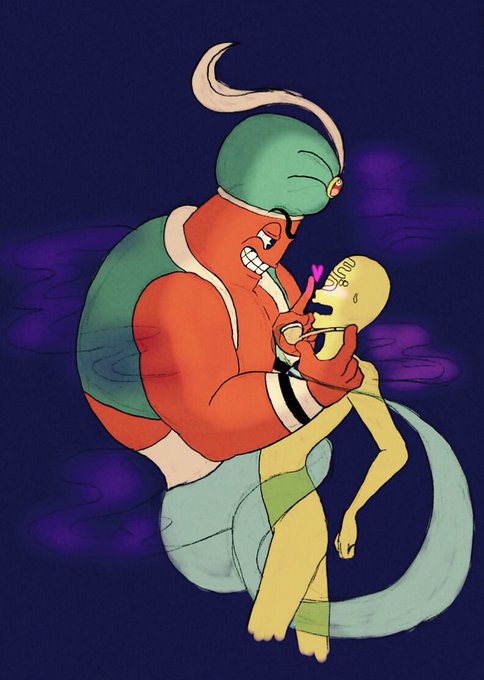 お題箱「カップヘッドとマグマンがふざけてコーラにメン●ス入れて遊んでたところあやまってダイスさんにぶちまけてしまってるところがみたいです!」