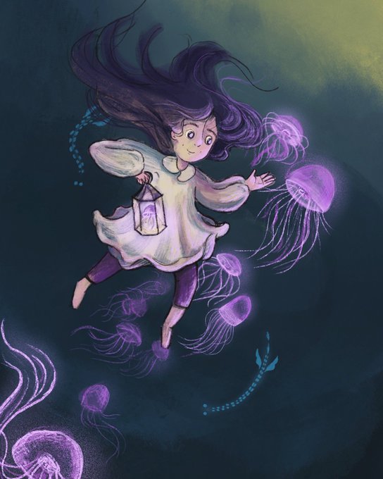 @FizOsborne Happy Autumn to you! Here’s a little ghost girl visiting her jellyfish friends 🍂 #kidlitart #kidlit