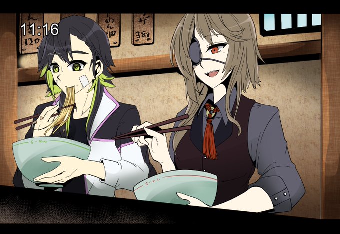 @KATANAGAMI_kabe #カタナガミ_ギャラリー あにめすくしょ風!!です よく食べる仲(飯友)です お借りしました!▶兎隠ましろさん 自宅▶神奈木朱理